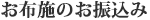 お布施・清掃料金のお振り込みをお願いします。お布施・清掃料金のお振込みが確認できるもの(銀行振込控え等)を送信してください。振込が確認でき次第、正式に僧侶の手配をいたします。